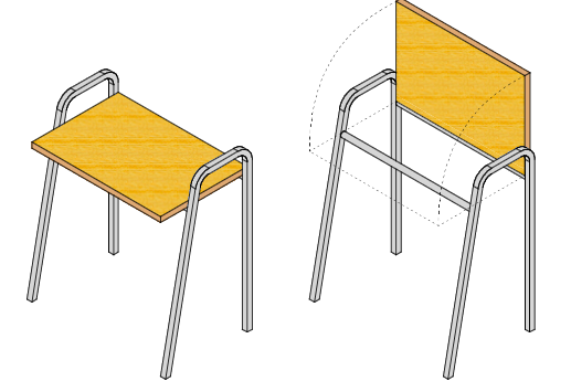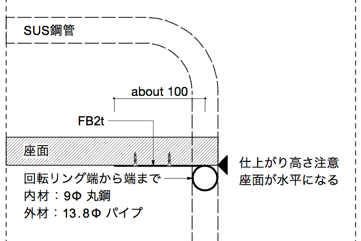 躯体の鋼材の強度や形状に関しては、有限会社槙塚鉄工所と何度も試作を繰り返し確認した上で、13. 8 Φの規格材を採用している。座面や前板の木材との精度には注意深くこだわり、木材担当のイーマ木工工房とも打ち合わせを重ねることにより実現した。